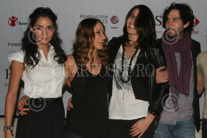MÉXICO, D.F., 28SEPTIEMBRE2010.- La actriz, Paola Nuñez, junto a las cantantes del grupo HA-ASH, Hanna y Ashley junto al cantante Benny Ibarra, durante la conferencia donde anunciaron el apoyo que brindaran a los damnificados de Veracruz. FOTO: ENRIQUE ORDÓÑEZ/CUARTOSCURO.COM