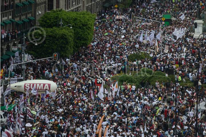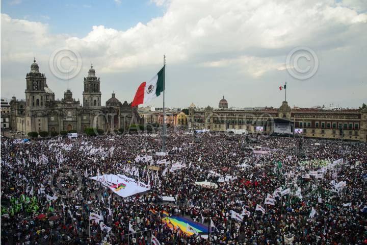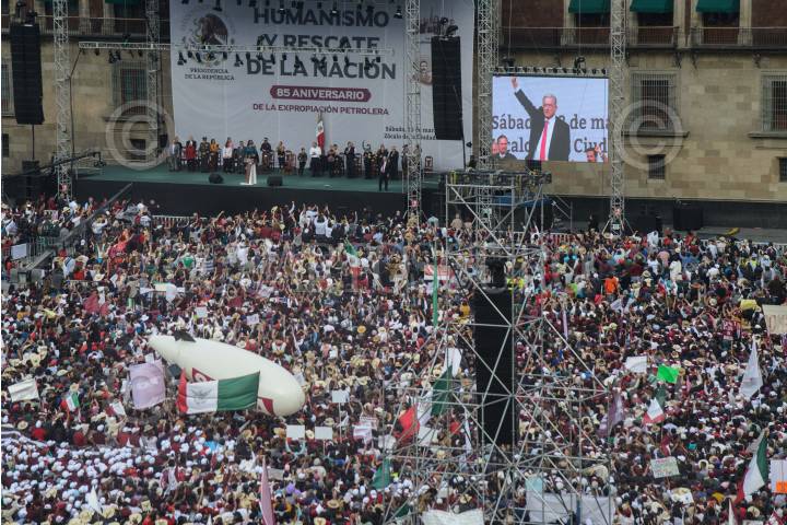 Miles de simpatizantes acudieron al zócalo capitalino con motivo de la celebración de de los 85 años de la expropiación petrolera.