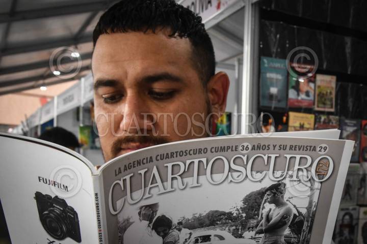CIUDAD DE MÉXICO, 13OCTUBRE2023.- Venta de ejemplares de la revista Cuartoscuro en el stand 59, carpa 2 de la XXIII Feria Internacional del Libro Zócalo que permanecerá hasta el próximo 22 de octubre. FOTO: MARIO JASSO/CUARTOSCURO.COM