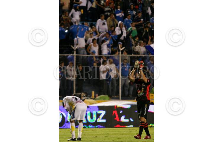 MÉXICO, D.F., 05DICIEMBRE2009.- Jugadores de los Monarcas del Morelia se lamentan y agradecen al público asistente al termino del partido en contra de la Maquina Celeste del Cruz Azul; encuentro de semifinal del torneo Apertura 2009 que gano el Cruz Azul 2 goles a 1, pasando así a la final del fútbol mexicano. FOTO: RODOLFO ANGULO/CUARTOSCURO.COM