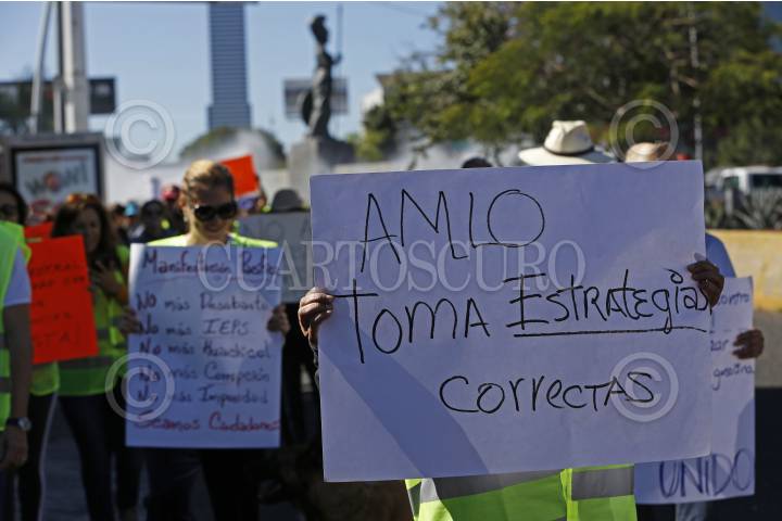 GUADALAJARA, JALISCO, 26ENERO2019.- Decenas de personas de diversas asociaciones civiles y en general protestaron en contra de la medidas tomadas por el gobierno federal en cuanto al combate del robo de gasolina lo cual tiene al país en una crisis de desabasto del hidrocarburo, dicha manifestación se llevo a cabo en las inmediaciones de la Glorieta Minerva y posteriormente caminaron hasta Casa Jalisco. FOTO: FERNANDO CARRANZA GARCIA / CUARTOSCURO.COM