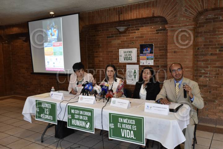 TOLUCA, ESTADO DE MÉXICO, 25MARZO2019.- María de los Ángeles Bravo, presidenta del Frente Nacional por la Familia en el Estado de México y Eugenia Peñaloza Lugo, presidenta de Verde es Vida, acompañadas por otras asociaciones anunciaron la realización del simposio “Derrumbando mentiras” el próximo 31 de marzo en el Teatro Morelos, y el cual pretende generar conciencia en temas como el aborto y la familia. FOTO: ARTEMIO GUERRA BAZ /CUARTOSCURO.COM