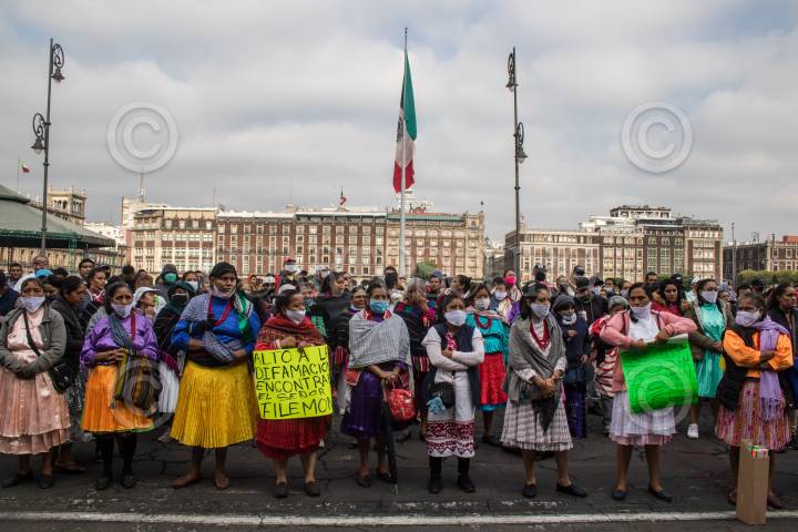 Integrantes de agrupaciones de artesanos que se dedican a comercializar sus productos en el primer cuadro se manifestron frente a Palacio Nacional para pedir apoyos económicos por la crisis que están viviendo debido a las medidas tomadas por la pandemia
