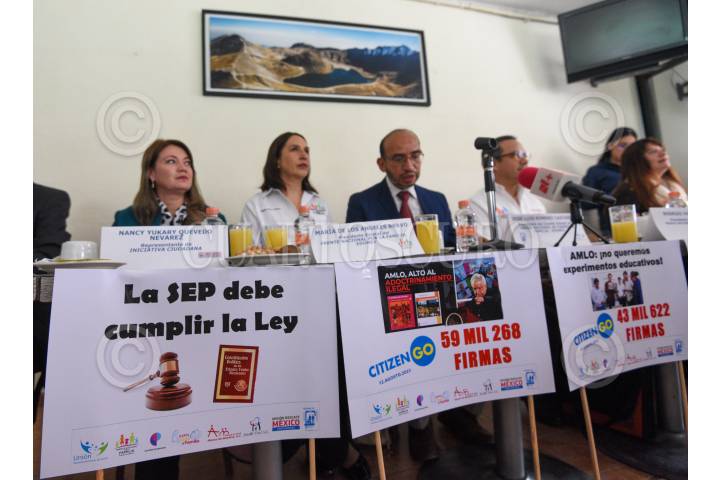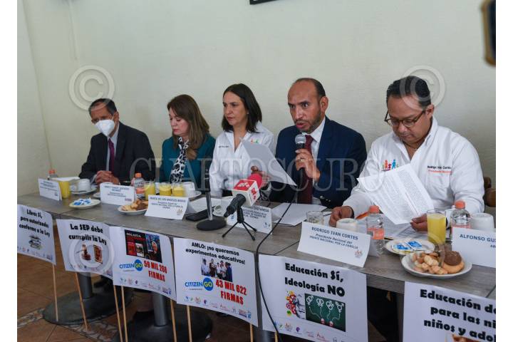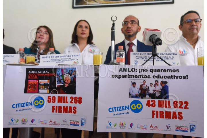 José Luis Romero, presidente del Comité Estatal de la Unión Nacional de Padres de Familia en compañía de integrantes de diversas asociaciones pidieron a las autoridades estatales no se lleve a cabo la distribución y entrega de los nuevos Libros de Texto Gratuito.