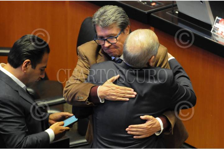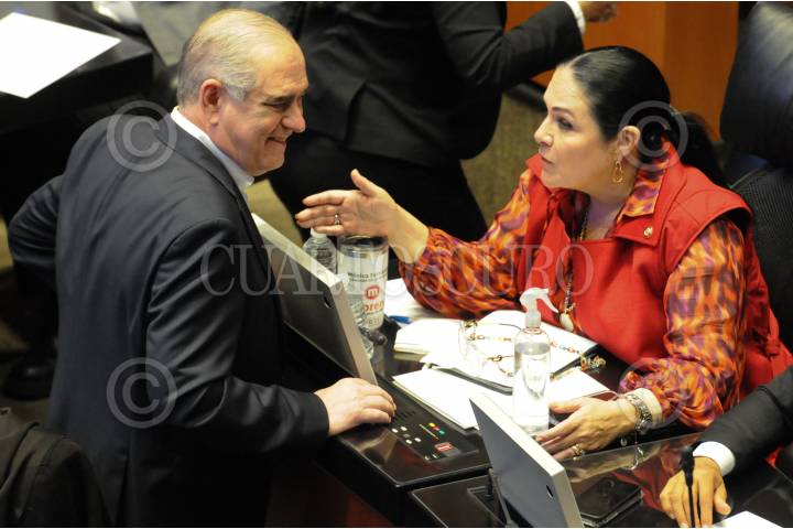 Julen Rementería, senador del PAN, dialoga con la morenista, Mónica Fernández.