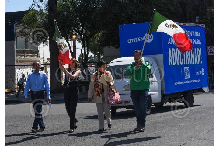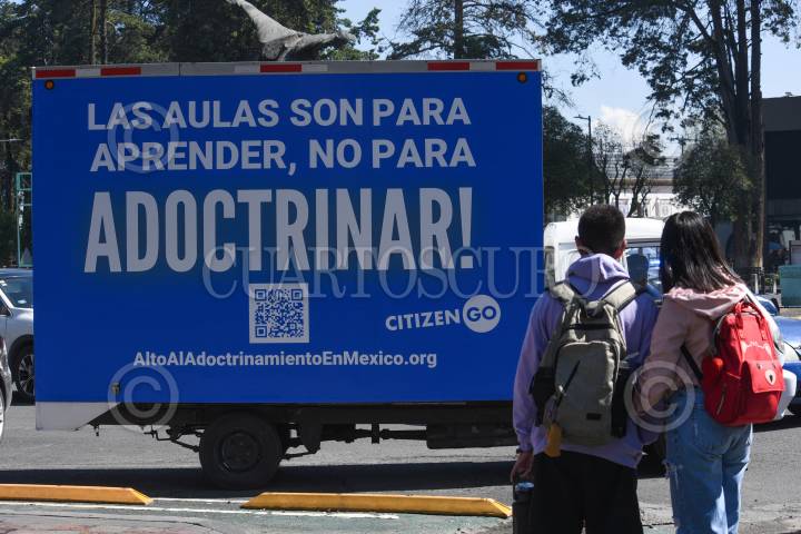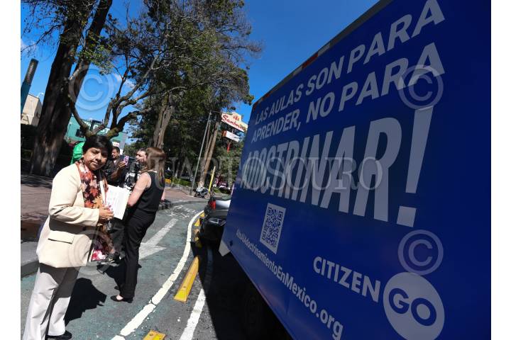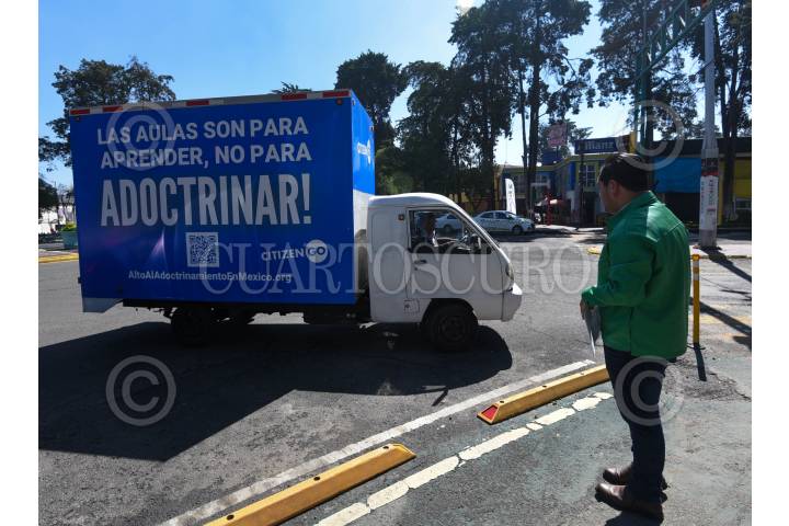 TOLUCA, ESTADO DE MÉXICO, 20SEPTIEMBRE2023.- Integrantes de asociaciones civiles y Citizen Go pusieron en marcha la unidad móvil que recorrerá la ciudad de Toluca con el lema “Las aulas son para aprender, ¡no para adoctrinar!”, quienes también se encuentran recabando firmas contra “el adoctrinamiento ilegal”, hicieron un llamado a padres de familia y maestros a unirse a esta causa. FOTO: CRISANTA ESPINOSA AGUILAR /CUARTOSCURO.COM