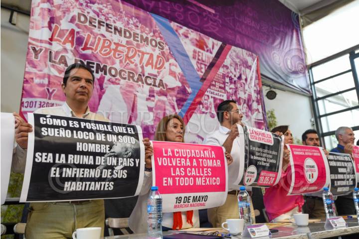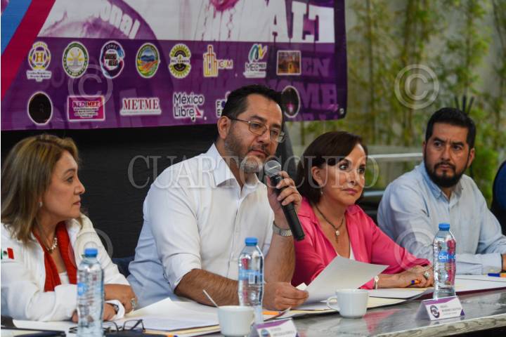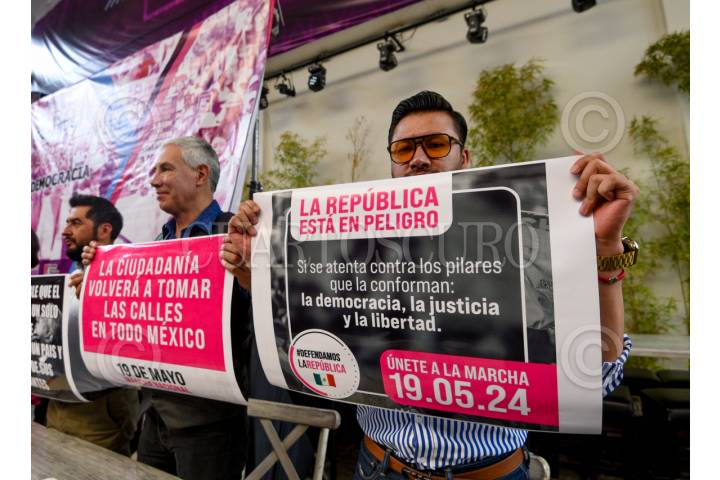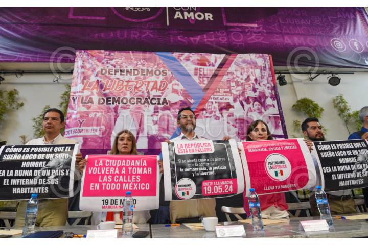 TOLUCA, ESTADO DE MÉXICO, 14MAYO2024.- Integrantes de diversas Asociaciones Civiles encabezadas por Misael Romero Lagunas en conferencia de prensa hicieron un llamado a la población en general para unirse a la Marcha Nacional por la República el próximo domingo 19 de mayo en la ciudad de Toluca. FOTO: CRISANTA ESPINOSA AGUILAR /CUARTOSCURO.COM