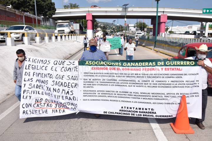 Asociaciones ganaderas que bloqueaban la Autopista del Sol, en demanda de proyectos y una audiencia con el gobernador, Héctor Astudillo Flores.