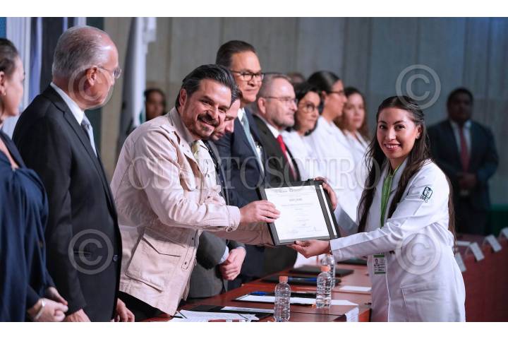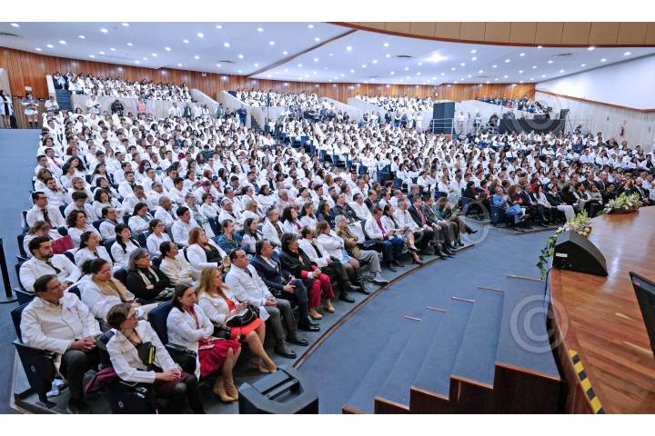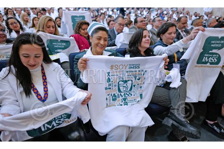 CIUDAD DE MÉXICO, 20FEBRERO2025.- El director general del Instituto Mexicano del Seguro Social (IMSS), Zoé Robledo, aseguró que el programa de formación del IMSS es el más grande de la historia de la institución, mientras en 2018 se ofertaron 4 mil 537 espacios para jóvenes seleccionados para el Examen Nacional de Aspirantes a Residencias Médicas (ENARM), para 2025 fueron 9 mil 813, lo cual convierte al Instituto en la institución formadora y empleadora más grande de médicos especialistas. Durante la Ceremonia de Clausura e Inauguración de los Cursos de Especialización Médica 2024-2025 y 2025-2026, respectivamente, en el Auditorio de la Unidad de Congresos del Centro Médico Nacional (CMN) Siglo XXI, Zoé Robledo señaló que en los últimos siete años se pasó de 15 mil residentes a 26 mil 964 para el ciclo escolar del 2024-2025. Sobre el ingreso, abundó que son 7 mil 427 especialistas que van a salir y que pronto acudirán a la jornada de reclutamiento 2025 dirigida a residentes del Seguro Social, conocida como draft, 72 por ciento más graduados que en 2019. FOTO: IMSS/CUARTOSCURO.COM