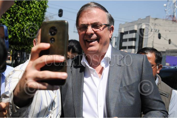 CIUDAD DE MÉXICO, 22FEBRERO2024.- Marcelo Ebrard llega a registrase como senador de Morena, algunos de sus simpatizantes se tomaron fotografías con él. FOTO: DANIEL AUGUSTO /CUARTOSCURO.COM