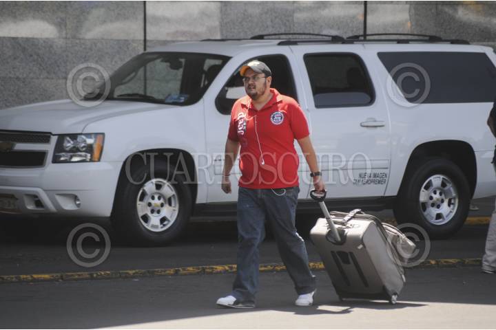 Decenas de personas salen de la sala de espera de Aeromexico.