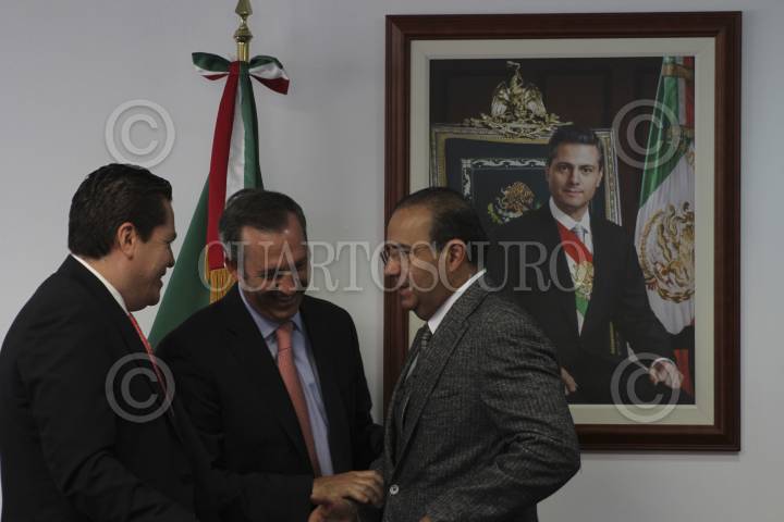 CIUDAD DE MÉXICO, 02FEBRERO2017.- Alfonso Navarrete Prida, secretario de Trabajo y Previsión Social, realizó la toma y entrega de nota de la Asociación Sindical de Sobrecargos de Aviación (ASSA) a Ricardo del Valle Solares, secretario general de ASSA México. FOTO: GALO CAÑAS /CUARTOSCURO.COM