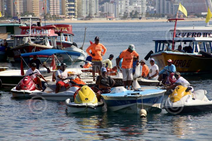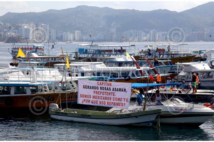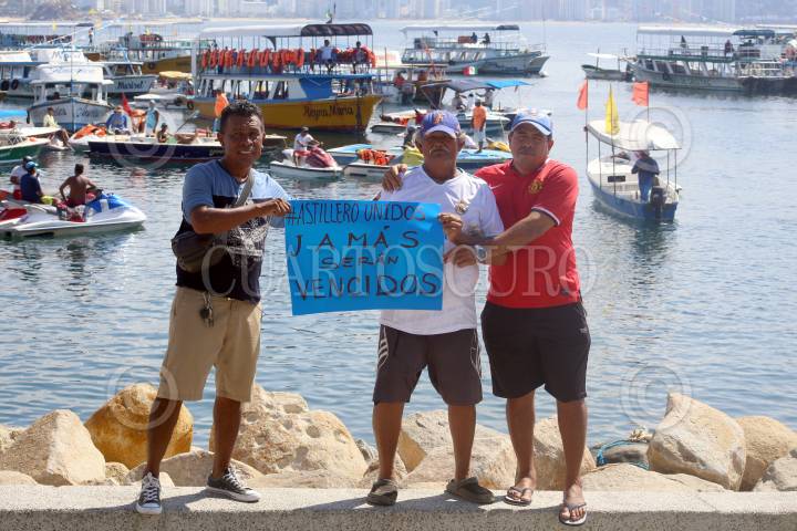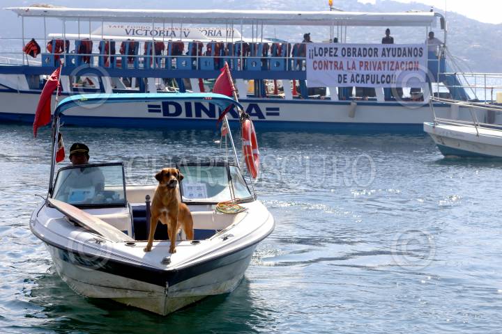 ACAPULCO, GUERRERO, 19FEBRERO2019.- Trabajadores del Astillero de playa Manzanillo realizaron una protesta marítima en la bahía de Acapulco apoyados con prestadores servicios turísticos abordo de unas 50 embarcaciones, exigieron al gobernador de Guerrero Héctor Astudillo respeto a su lugar de trabajo en el astillero de playa Manzanillo, también pidieron la intervención del presidente de México Andrés Manuel López Obrador su intervención para evitar que se privatice el astillero. FOTO: CARLOS ALBERTO CARBAJAL /CUARTOSCURO.COM