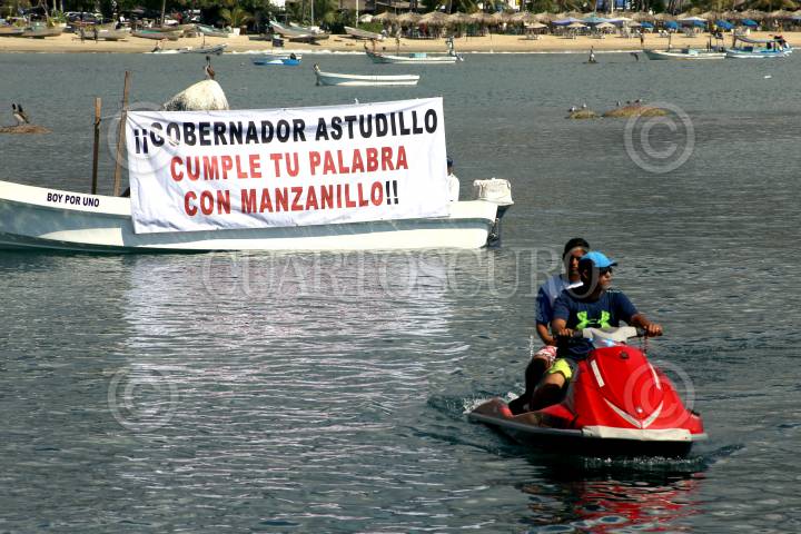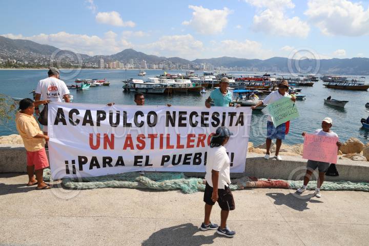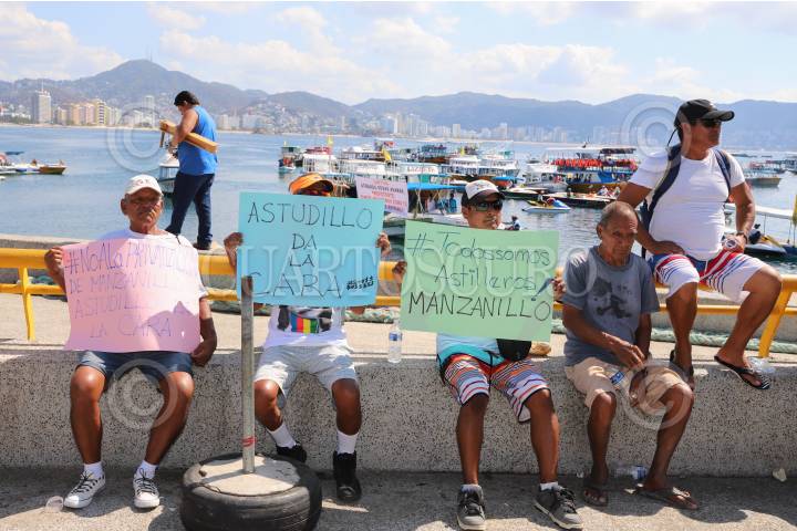 ACAPULCO, GUERRERO, 19FEBRERO2019.- Protestaron y marcharon prestadores de servicios náuticos se manifestaron acompañados de su familia en el Parque de la Reina y posteriormente marcharon por la avenida Costera Miguel Alemán, para mostrar su apoyo a trabajadores del astillero de playa Manzanillo, quienes exigieron ser tomados en cuenta en la renovación de playa Manzanillo. Acusaron que fueron expulsados por parte de autoridades del estado y federales del astillero de Manzanillo, que representa el único sitio en el puerto de Acapulco para reparar embarcaciones. Pidieron a autoridades la reactivación de dicho astillero al señalar que la Bahía hay más de mil 700 embarcaciones y no existe otro lugar para repararlas, lo cual pone en riesgo el sustento económico de cientos de familias en Acapulco. FOTO: BERNANDINO HERNÁNDEZ /CUARTOSCURO.COM
