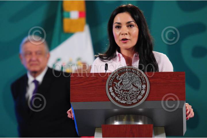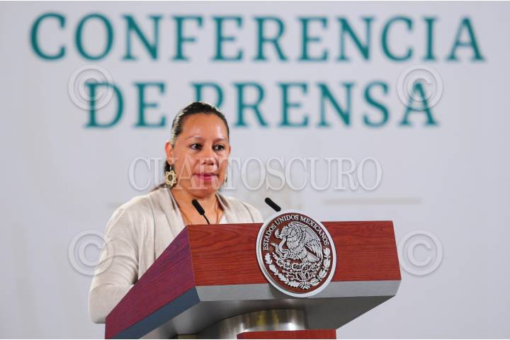 Elizabeth Vilchis, durante su participación en la conferencia mañanera.