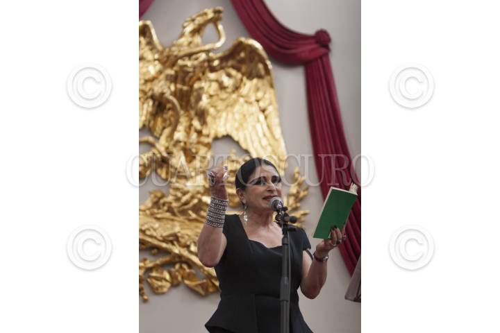 MÉXICO, D.F., 23FEBRERO2013.- La actríz y cantante, Astrid Hadad, realiza una lectura en atril en el marco d ela XXXIV Feria Internacional del Libro en el Palacio de MIneria, la lectura se realizó en el salón de Actos de dicho Palacio. La feria estará abierta hasta el 4 de Marzo. FOTO: FRANCISCO RODRÍGUEZ /CUARTOSCURO.COM