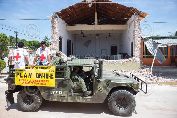 ASUNCIÓN IXTALTEPEC, OAXACA, 13SEPTIEMBRE2017.- Militares y voluntarios de la Cruz Roja patrullan las calles los municipios afectados por el sismo de la semana pasada, brindar ayudar a los damnificados del sismo de 8.2 grados en la escala de Richter. FOTO: TERCERO DÍAZ /CUARTOSCURO.COM