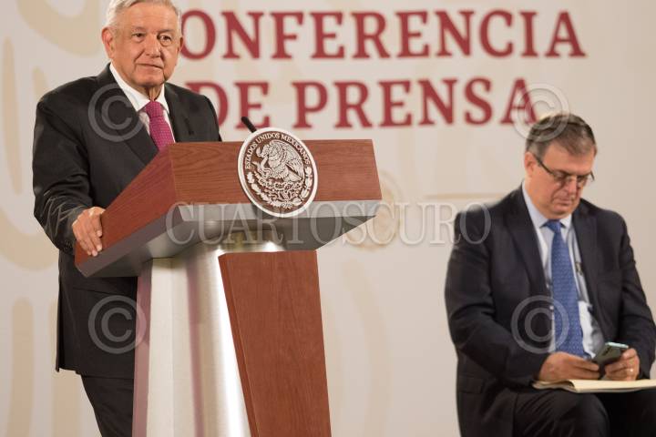 Andrés Manuel López Obrador, Presidente de México, y Marcelo Ebrard Casaubón, secretario de Relaciones Exteriores, durante la conferencia matutina.