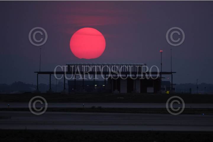 ZUMPANGO, ESTADO DE MÉXICO, 22ABRILO2025.- Puesta de sol desde las inmediaciones del Aeropuerto Internacional Felipe Ángeles (AIFA). FOTO: GALO CAÑAS/CUARTOSCURO.COM