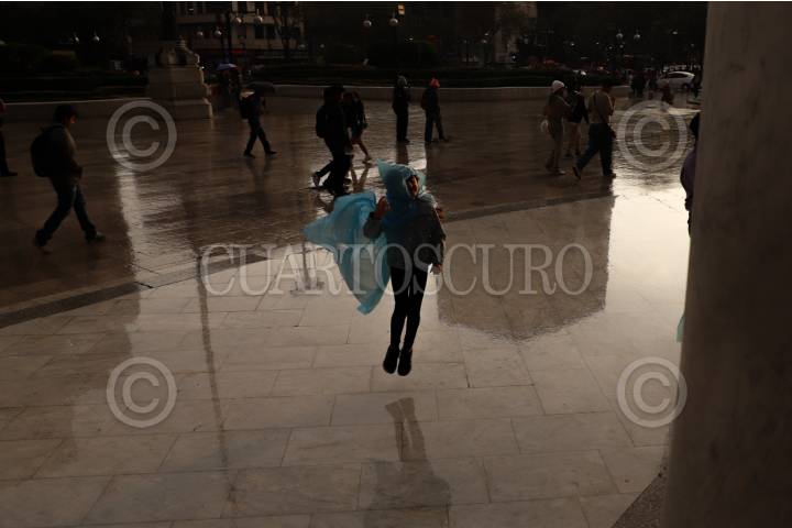 CIUDAD DE MÉXICO, 22ABRIL2025.- Una infante brinca mientras cae la lluvia en el centro de la capital. FOTO: DANIEL AUGUSTO/ CUARTOSCURO.COM
