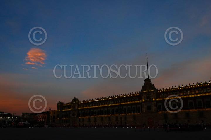 CIUDAD DE MÉXICO, 11ENERO2024.- Aspectos del atardecer multicolor cubriendo los edificios de la periferia del Zócalo Capitalino. FOTOS: ROGELIO MORALES /CUARTOSCURO.COM