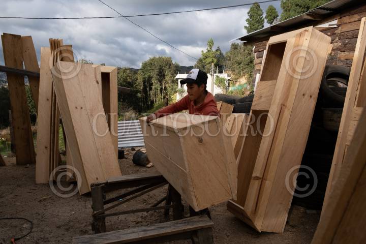 Ataúdes en espera de ser terminados para su distribución a las diversas funerarias de la ciudad.