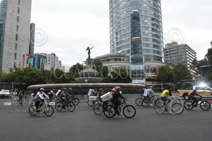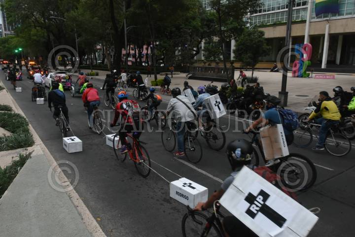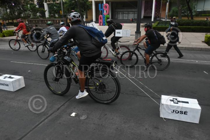 Ciclistas rodaron por avenida Reforma arrastrando ataúdes de cartón para exigir justicia por usuarios de bici que han muerto atropellado en las últimas semanas.