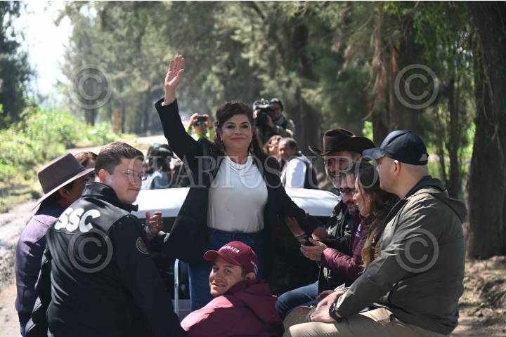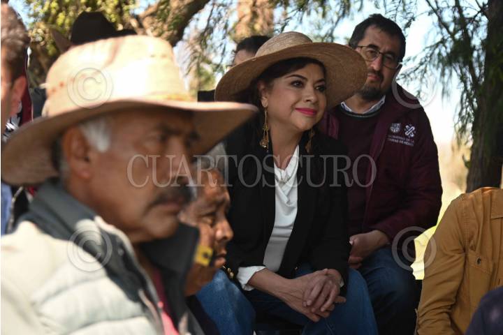CIUDAD DE MÉXICO, 11OCTUBRE2024.- Clara Brugada, jefa de Gobierno, encabezó la reunión con productores de las zonas inundadas en el ejido de Mixquic luego de las lluvias que se presentaron en la entidad. FOTO: GOBIERNO DE LA CIUDAD DE MÉXICO/CUARTOSCURO.COM