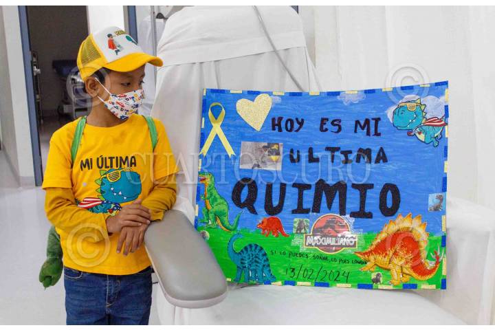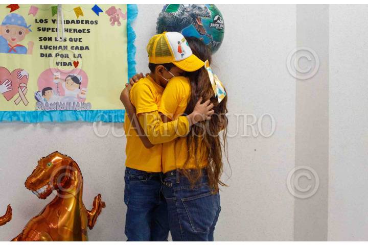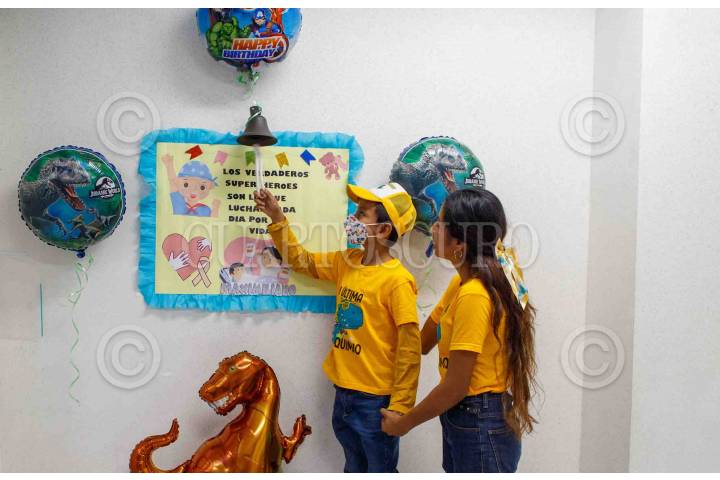 TAPACHULA, CHIAPAS, 18JULIO2024.- El Instituto Mexicano del Seguro Social (IMSS) reconoció el esfuerzo y valor de Maxi, un paciente pediátrico oncológico de Chiapas, tras superar la Leucemia Linfoblástica Aguda (LLA) y tocar la emblemática “campana de la vida”, después de recibir durante tres años atención integral por parte del personal del Centro de Referencia Estatal para la Atención del Niño y de la Niña con Cáncer (OncoCREAN) en el Hospital General de Zona (HGZ) No. 1 Nueva Frontera en Tapachula. Desde abril de 2021, cuando Maxi tenía sólo 6 años, hasta febrero de 2024, ha demostrado una inquebrantable determinación y un gran compromiso con el tratamiento que, en conjunto con el apoyo de su familia, ha permitido que su recuperación sea óptima y comience con el periodo de vigilancia médica. FOTO: IMSS/CUARTOSCURO.COM