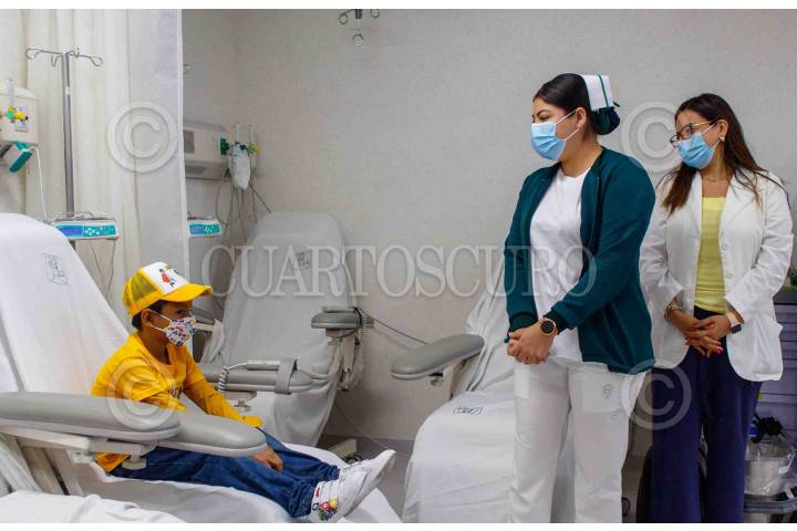 CIUDAD DE MÉXICO, 13MARZO2024.- El Instituto Mexicano del Seguro Social (IMSS), a través de los 35 Centros de Referencia Estatales para la Atención del Niño y de la Niña con Cáncer (OncoCREAN), brinda servicios especializados a pacientes pediátricos oncológicos mediante protocolos vanguardistas homologados y atención temprana de complicaciones, lo cual ha incrementado la tasa de sobrevida frente al cáncer infantil. El titular de la Coordinación de Atención Oncológica del Seguro Social, doctor Enrique López Aguilar, informó que durante el último año la Aplicación de Pacientes Oncológicos (APO) registró a más de 5 mil niños con esta enfermedad, de los cuales 2 mil 200 fueron anotados en un censo integral y actualmente reciben atención especializada. FOTO: IMSS/CUARTOSCURO.COM
