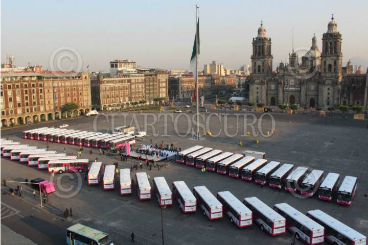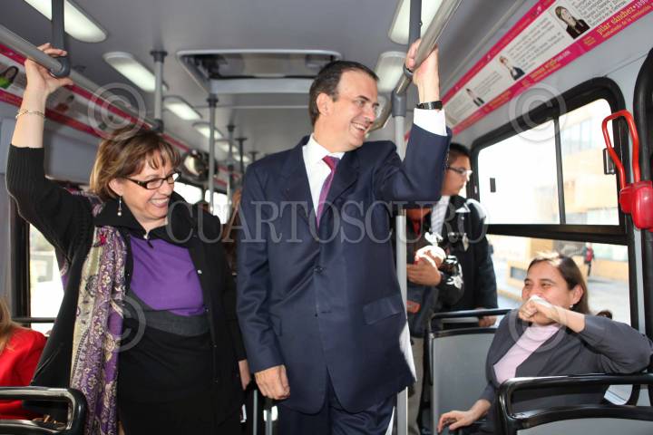 MÉXICO D.F., 24NOVIEMBRE2010.- Marcelo Ebrard Casaubon, Jefe del Gobierno Capitalino, se realizo la presentación de la nueva imagen del Programa Atenea, Servicio Exclusivo de Autobuses para Mujeres y que a partir de hoy se incorporaran 100 unidades más. FOTO: GUILLERMO PEREA/CUARTOSCURO.COM