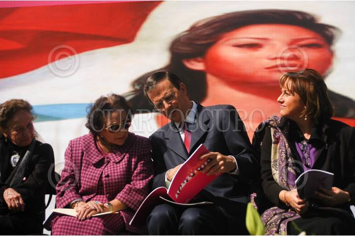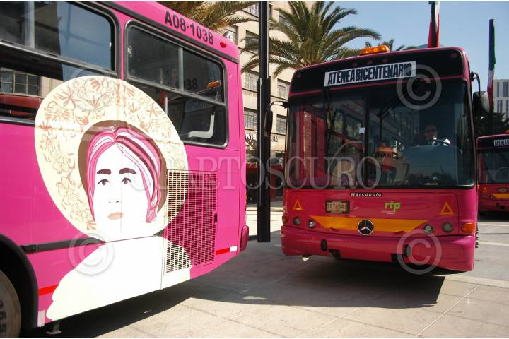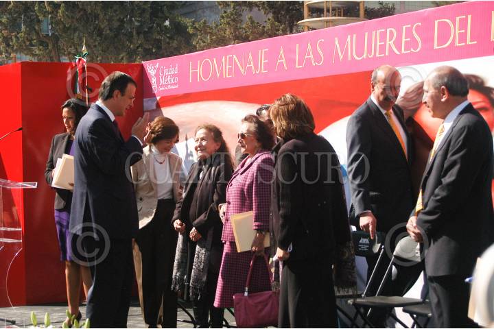 MÉXICO D.F., 24NOVIEMBRE2010.- Marcelo Ebrard Casaubon, Jefe del Gobierno Capitalino, acompañado de Rosario Ibarra Senadora del PRD, Martha Lucia Micher, Directora del Instituto de la Mujer del D.F. y Ifigenia Martínez Hernández, Diputada del PRD, encabezo el homenaje a las Mujeres del Bicentenario 1810- 2010 en las y realizo la presentación de la nueva imagen del Programa Atenea, Servicio Exclusivo para Mujeres y que a partir de hoy en el cual se incorporaron 100 unidades más. FOTO: GUILLERMO PEREA/CUARTOSCURO.COM
