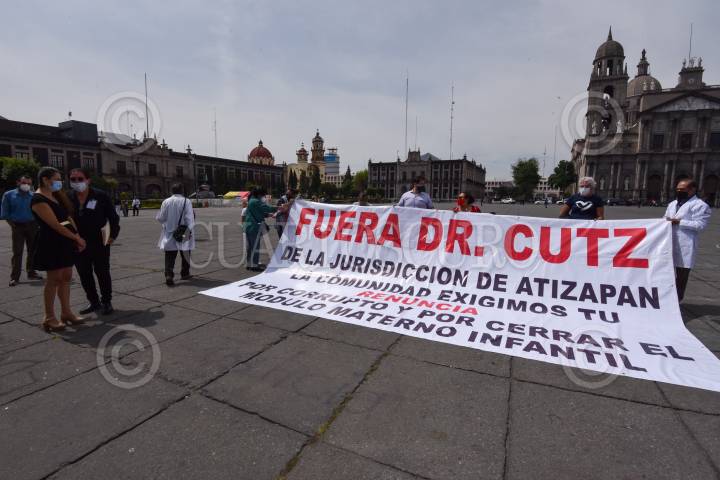 Personal médico del Módulo Materno Infantil de Atizapán de Zaragoza se manifestaron frente a Palacio de Gobierno pidiendo la intervención del gobernador mexiquense para que no sea cerrado este servicio a la comunidad.