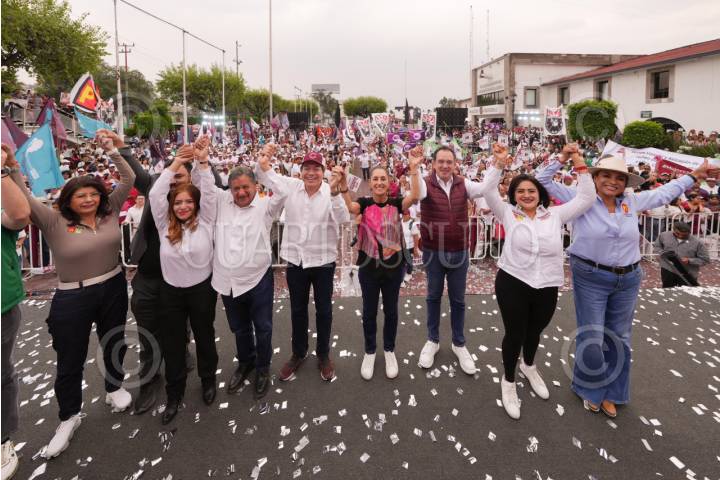 TLALNEPANTLA, ESTADO DE MÉXICO, 04MAYO2024.- Claudia Sheinbaum, candidata a la Presidencia de la República por la coalición Sigamos Haciendo Historia, encabezó un un mitin con simpatizantes en la entidad. FOTO: PRENSA CLAUDIA SHEINBAUM/CUARTOSCURO.COM