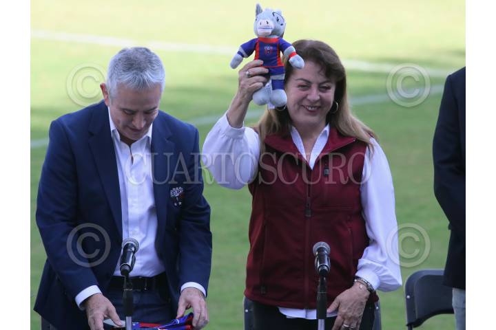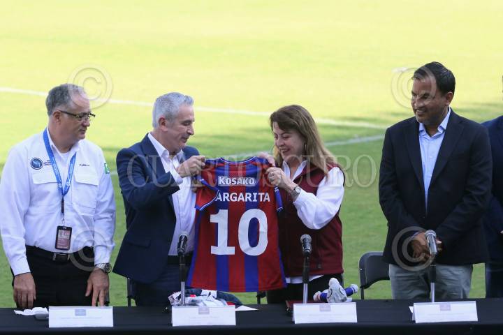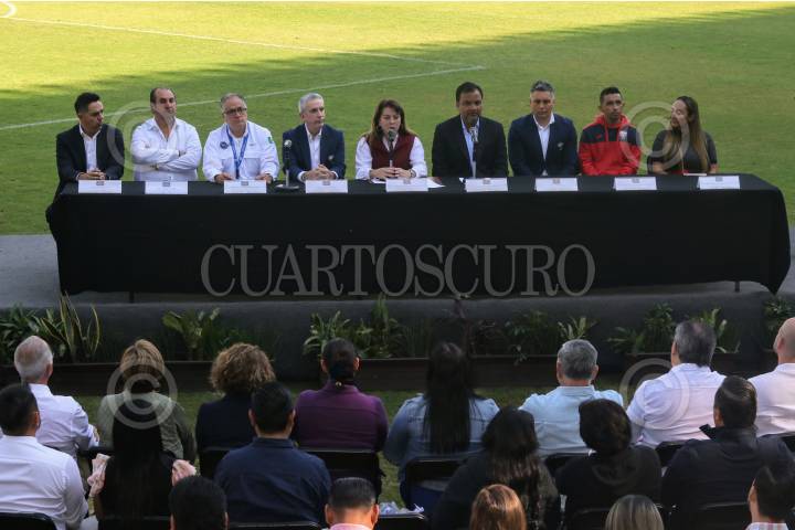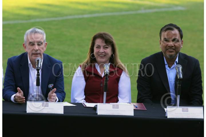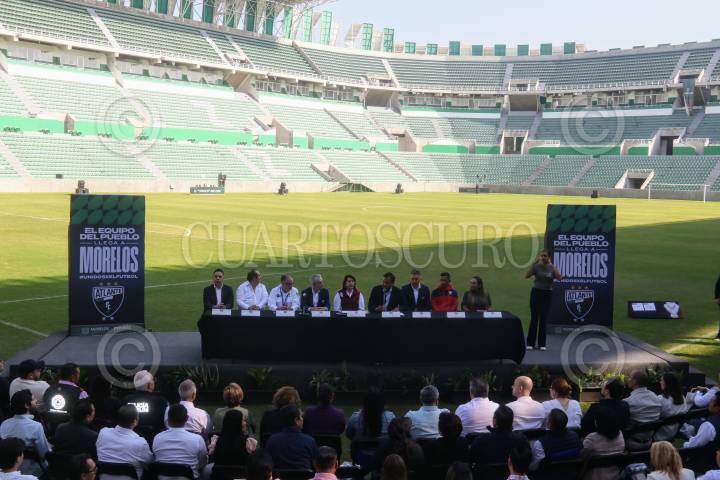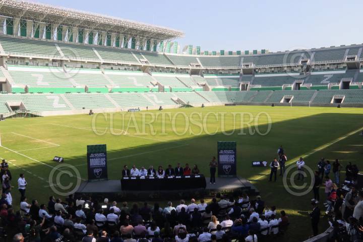 ZACATEPEC, MORELOS, 06DICIEMBRE2024.- Está mañana fue anunciado que el Atlante, equipo de fútbol de la Liga de Expansión, jugará en el estadio Agustín "Coruco" Díaz a partir dea próxima temporada. El evento fue encabezado por la gobernadora, Margarita González Saravia. FOTO: MARGARITO PÉREZ RETANA/CUARTOSCURO.COM