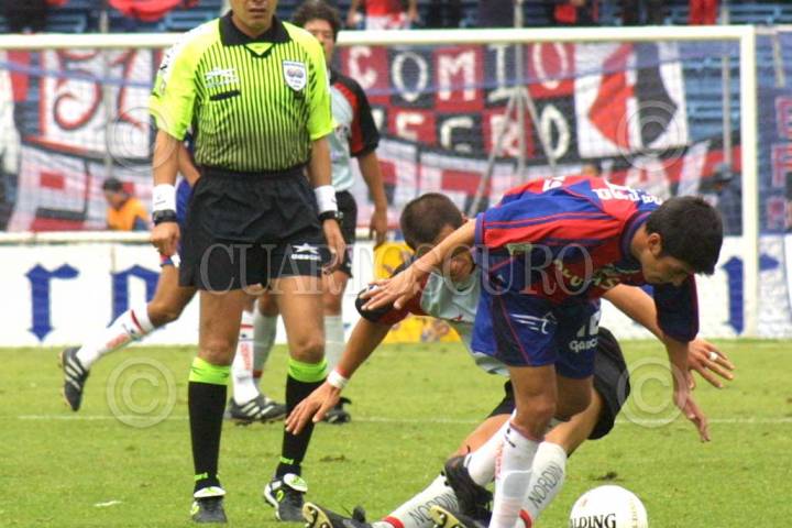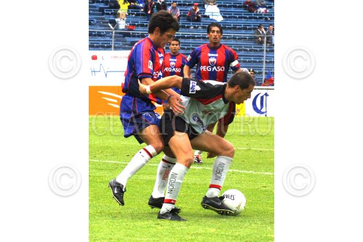 MÉXICO, D.F., 04FEBRERO2007.- El delantero de los Zorros del Atlas, Nicolas Olivera, se quita la marca de Nelson Cuevas, de las Aguilas del América, durante el primer tiempo del encuentro realizado en el Estadio Azteca, el cual está hasta el momento empatado a ceros. FOTO: ISAAC ESQUIVEL/CUARTOSCURO.COM