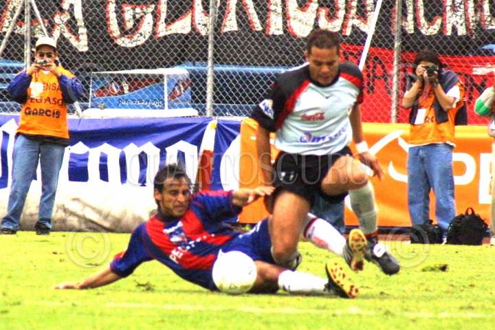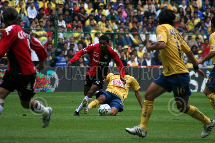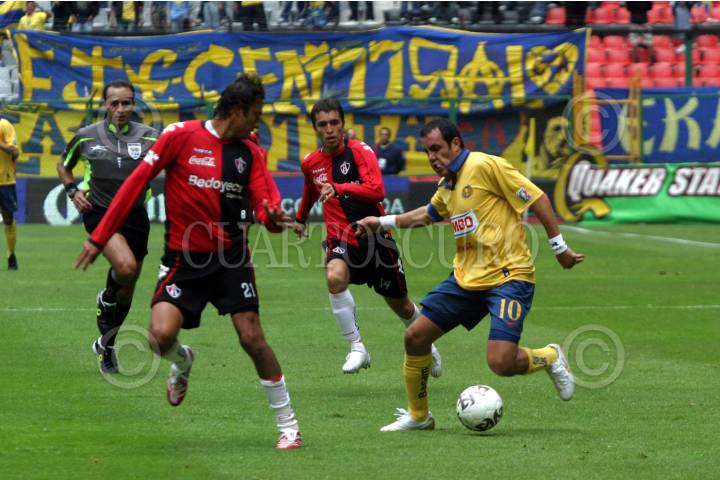 MÉXICO, D.F., 04FEBRERO2007.- El delantero de las Aguilas del América, Cuauhtémoc Blanco, enfrenta a Juan Santiago, defensa de los Zorros del Atlas, durante el primer tiempo del partido, el cual está hasta el momento empatado a ceros. FOTO: SAÚL LÓPEZ/CUARTOSCURO.COM