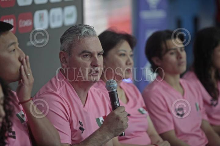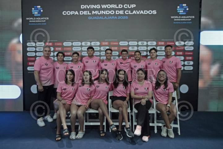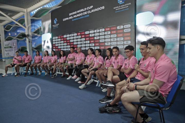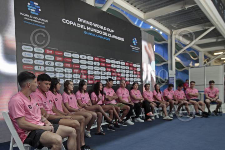 ZAPOPAN, JALISCO. 02ABRIL2025.- Los entrenadores y los 12 atletas de la Delegación Mexicana que competirá en la Copa del Mundo de Clavados Guadalajara 2025, ofreció una conferencia de prensa para hablar sobre los pormenores de la justa que se llevara a cabo en esta ciudad el próximo fin de semana, dicho evento tuvo lugar en las instalaciones del Centro Acuático Metropolitano. FOTO: FERNANDO CARRANZA GARCIA / CUARTOSCURO.COM