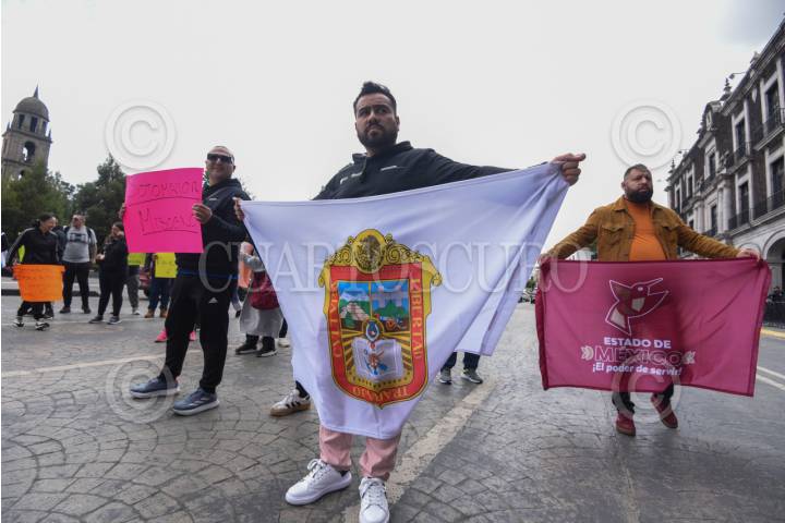 TOLUCA, ESTADO DE MÉXICO, 19JUNIO2025.- Con banderas del Estado de México y de la actual administración estatal atletas, familiares y entrenadores de la Asociación de Taekwondo del Estado de México se manifestaron en Palacio de Gobierno denunciando el retiro de apoyos por parte de la Dirección General de Cultura Física y Deporte del Edoméx, así como la falta del seguro médico para los deportistas, acoso, amenazas y diversas irregularidades por los encargados de este instituto estatal, hicieron un llamado a la Gobernadora Delfina Gómez Álvarez y al Secretario de Educación, Ciencia, Tecnología e Innovación, Miguel Ángel Hernandez Espejel, a tomar cartas en este asunto ya que se encuentran con esta situación cuando previó a su participación en la Olimpiada Nacional. FOTO: CRISANTA ESPINOSA AGUILAR /CUARTOSCURO.COM