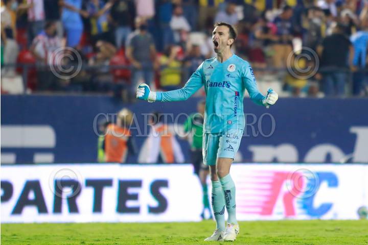El portero del San Luis, Marcelo Baroveroi, celebra las anotaciones de su compañeros en el partido ante los Tuzos.