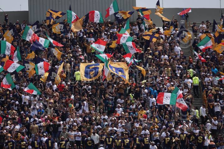 CIUDAD DE MÉXICO, 17SEPTIEMBRE2923.-La porra del equipo de Pumas apoyó con banderas de México previo al partido contra el Atlético de San Luis en la Jornada 8 en el Estadio Olímpico Universitario. FOTO: GRACIELA LÓPEZ /CUARTOSCURO.COM