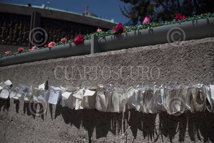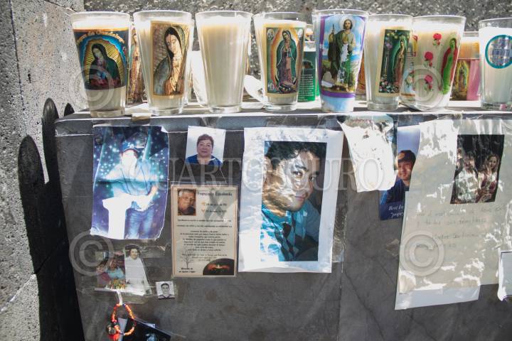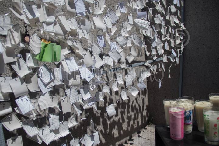 Muro de recordatorio de muertos por Covid 19 en la Basílica de Guadalupe