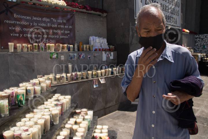 Espacio especial para muertos por el Covid 19 con veladoras y mensajes a sus seres que fallecieron a causa de esta enfermedad.