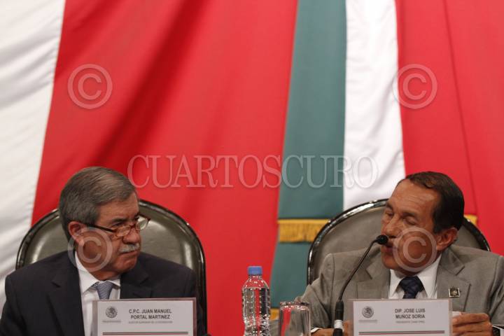 MÉXICO, D.F., 20FEBRERO2013.- Juan Manuel Portal Martínez, titular de la Auditoría Superior de la Federación (ASF) entregó a la Comisión de Vigilancia de la Cámara de Diputados, encabezada por José Luis Muñoz Soria, los resultados de la Cuenta Pública 2011. FOTO: MOISÉS PABLO /CUARTOSCURO.COM