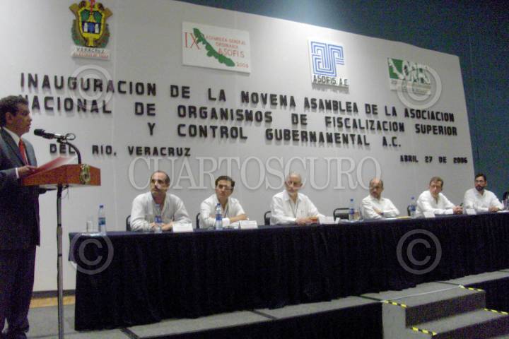 BOCA DEL RIO, VERACRUZ 27ABRIL2006.- Auditores de todo el pais acompañados por el gobernador del estado de Veracruz Fidel Herrera Beltran, posan para la foto oficial, al termino de la inauguracion de la "Novena Asamblea de la Asociacion Nacional de Organismos de Fiscalizacion Superior y Control Gubernamental A.C." (ASOFIS) realizado en Boca del Rio, a la que asistio tambien el auditor general del estado de Guerrero Ignacio Rendon Romero. FOTO: Oscar Alvarado/CUARTOSCURO.COM