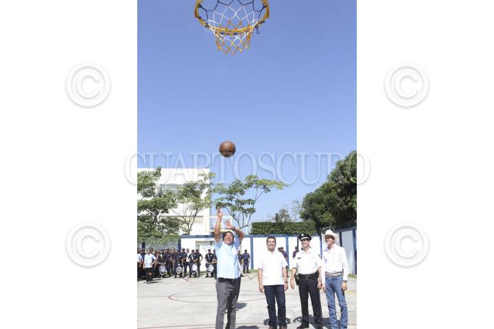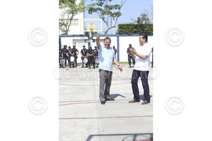 HUIMANGUILLO, TABASCO, 23FEBRERO2013.- Audomaro Martínez Zapata, secretario de seguridad pública, lanza una canasta durante su participación en la puesta en marcha de los "Primeros Juegos Deportivos Policiales y de las Fuerzas Armadas que tuvo lugar en las instalaciones de la Dirección Municipal de Seguridad Pública. FOTO: MARCO POLO GUZMÁN HERNÁNDEZ /CUARTOSCURO.COM