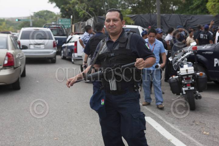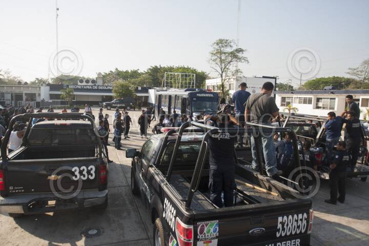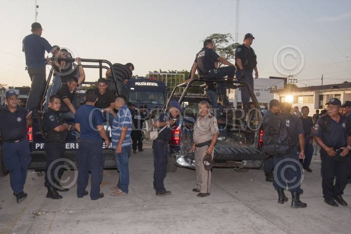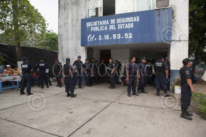 VILLAHERMOSA, TABASCO, 17MARZO2014.- Elementos policíacos tomaron las instalaciones de la Secretaria de Seguridad Pública local y exigieron, mediante un paro de labores, la destitución del general retirado Audomaro Martínez Zapata. En este día se sumaron elementos de las direcciones de Protección Civil, Bomberos y del reclusorio, y se estima que sean al menos tres mil elementos que están contra del servidor público. Así mismo las calles y sus avenidas de esta capital lucieron vacías y sin recorridos de patrullajes por parte de esta corporación policíaca. FOTO: MARCO POLO GUZMÁN HERNÁNDEZ /CUARTOSCURO.COM