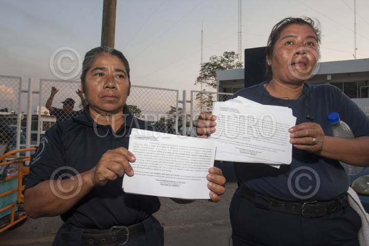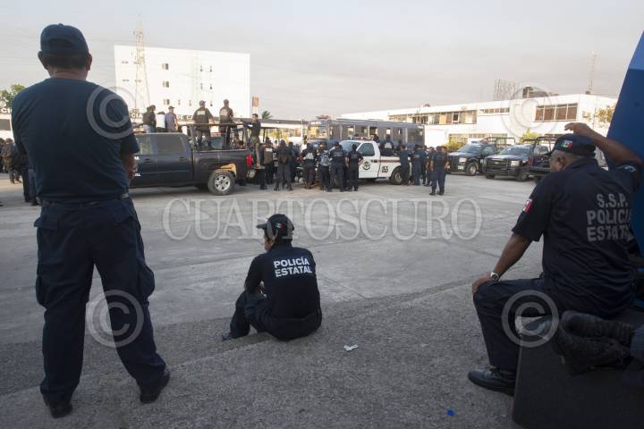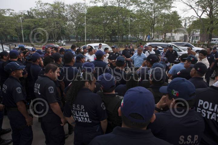 VILLAHERMOSA, TABASCO, 29MARZO2014.- Hoy se cumplen trece días del conflicto policial, el gobernador Arturo Núñez Jiménez lanzó un ultimátum al movimiento, en donde advierte que es mejor que los elementos policíacos que tienen tomadas las instalaciones de la Secretaría de Seguridad Pública en exigencia de la renuncia del general retirado Audomaro Martínez Zapata, que se pongan a realizar sus funciones o serán despedidos los siete mil manifestantes y crearan nuevos cuerpos de seguridad para población. Dos horas después dio su postura Isabelino León, quien encabeza el movimiento dejando en claro que aceptan el gobierno los despida y que sean liquidados conforme a derecho, ya que el gobierno tendría al menos que erogar cien millones de pesos para pagarles las liquidaciones, ademas de que tardarían por lo menos un año en formar a los nuevos cuerpos policíacos. FOTO: MARCO POLO GUZMÁN HERNÁNDEZ /CUARTOSCURO.COM