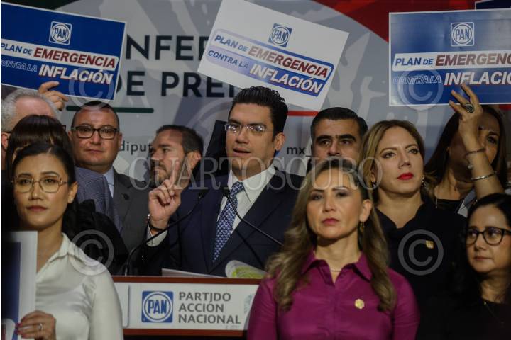 Jorge Romero, diputado y coordinador del PAN, junto a legisladores panistas, ofrecieron conferencia de prensa para presentar un plan de emergencia contra la inflación.