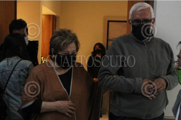 Carmen Lira y Aurelio Fernández, durante su salida de la capilla donde fueron velados los restos del monero Helguera.